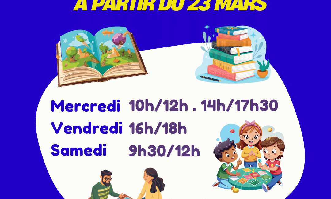 Pour mieux vous accompagner dans vos moments de lecture et de détente, votre Pôle Culturel (médiathèque et ludothèque) adapte ses horaires d’ouverture.