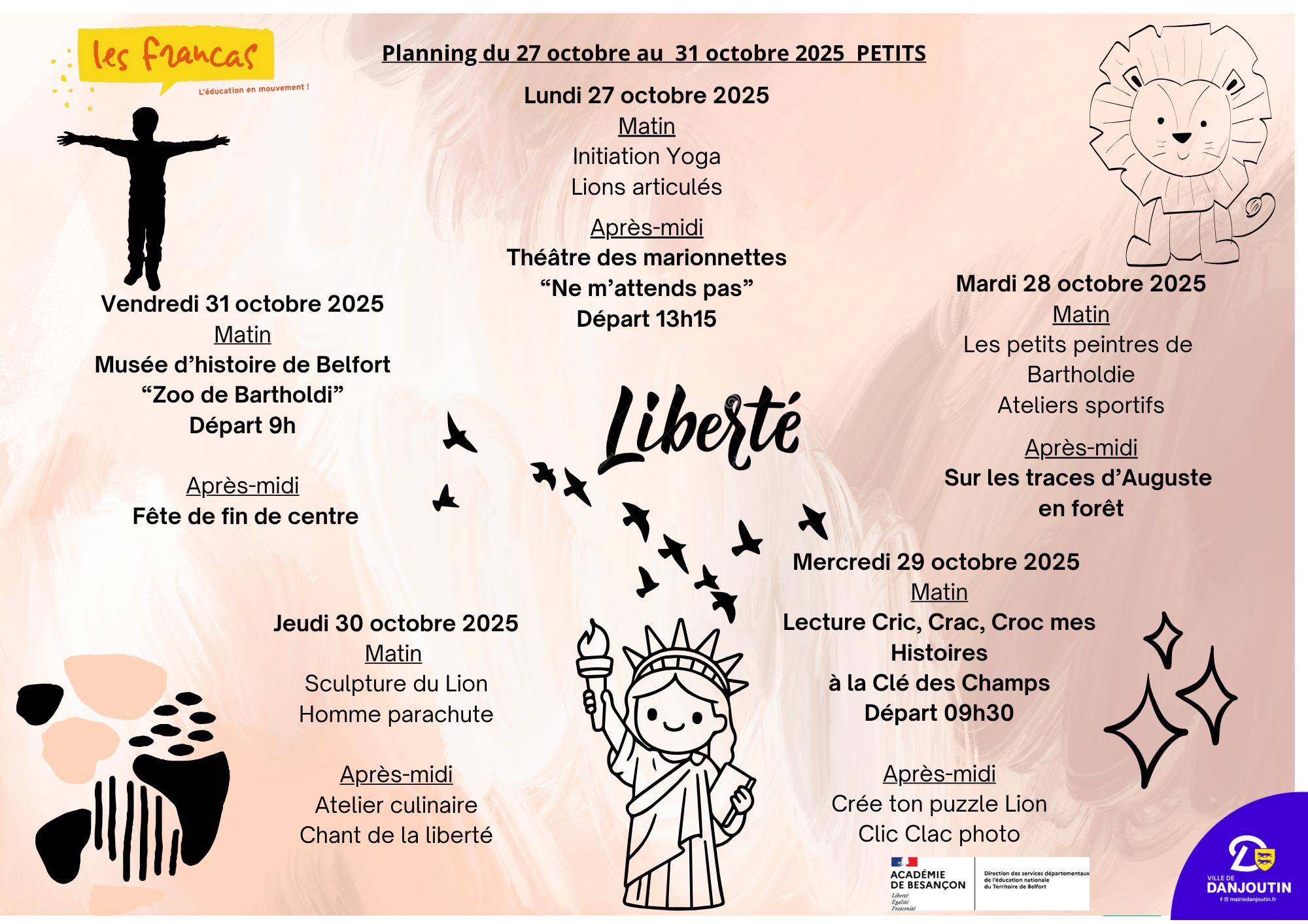 La Commune de DANJOUTIN organise un accueil pour les enfants scolarisés de 3 à 11 ans, en périscolaire (matin, soir et restauration) et en accueil de loisirs le mercredi et les vacances scolaires. L’équipe d’animation met en place un projet pédagogique en adéquation avec le projet éducatif des ACM et le PEDT de la Commune.
